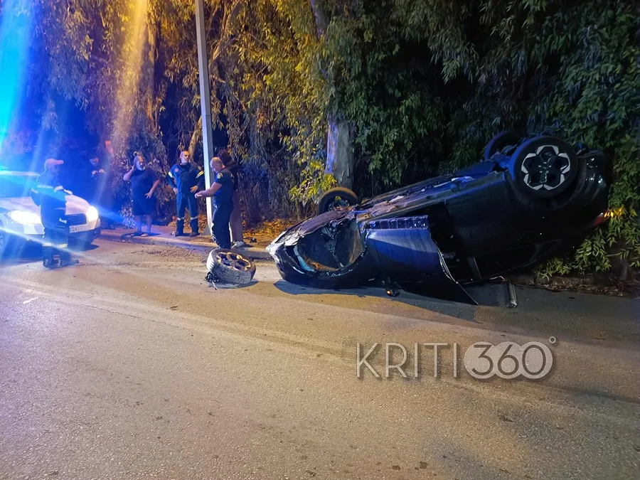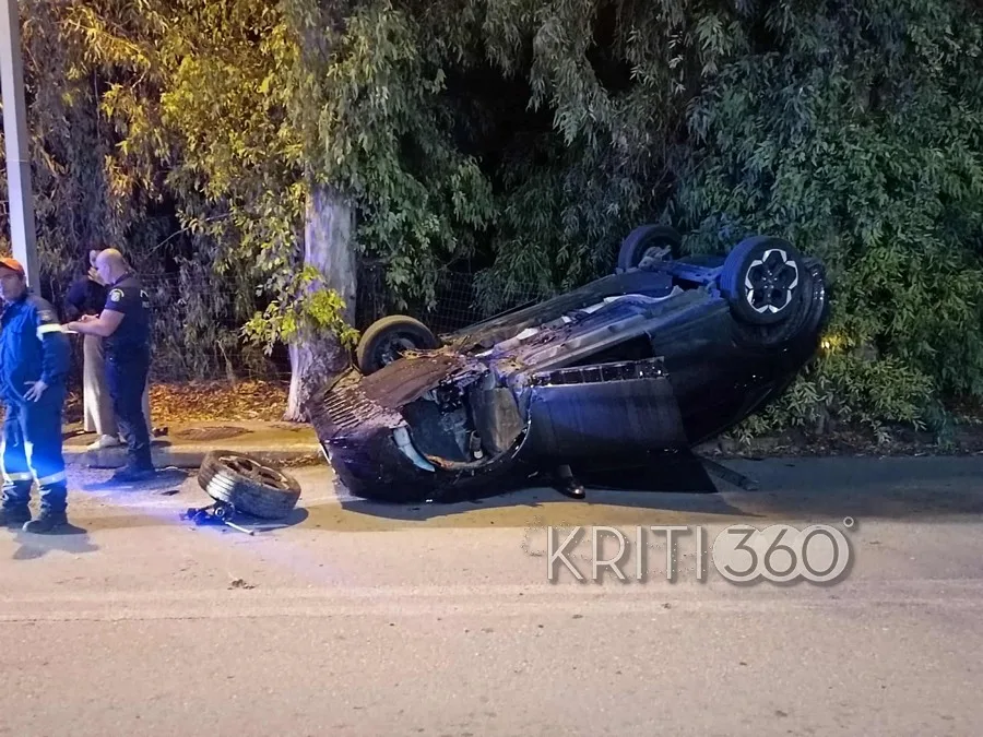 Αυτοκίνητο που οδηγούσε μια γυναίκα με κατεύθυνση προς Χανιά, εξετράπη από τον δρόμο, χτύπησε σε δέντρο, αναποδογύρισε και προσγειώθηκε στην άσφαλτο.