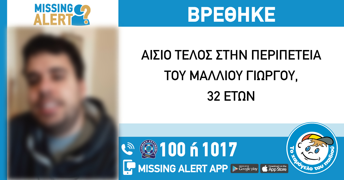Η περιπέτεια του Μάλλιου Γιώργου, 32 ετών, έληξε σήμερα 18/12/2021 δίνοντας τέλος στην αγωνία των δικών του ανθρώπων που τον αναζητούσαν.