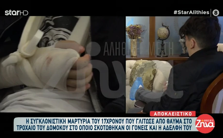 «Κοιτούσα έξω από το παράθυρο και ξαφνικά ακούω τη μητέρα μου και την αδερφή μου να ουρλιάζουν» θυμάται ο 17χρονος για τις στιγμές πριν από το τραγικό δυστύχημα. «Μας χτύπησε ένα αυτοκίνητο, δεν θυμάμαι τι ήταν, στον προφυλακτήρα και αρχίσαμε να κάνουμε σβούρες και χτυπήσαμε πάνω στο φορτηγό» συνεχίζει.