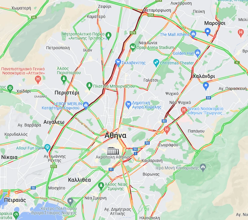 Ο χάρτης με την κίνηση τώρα (09:30) στους δρόμους…