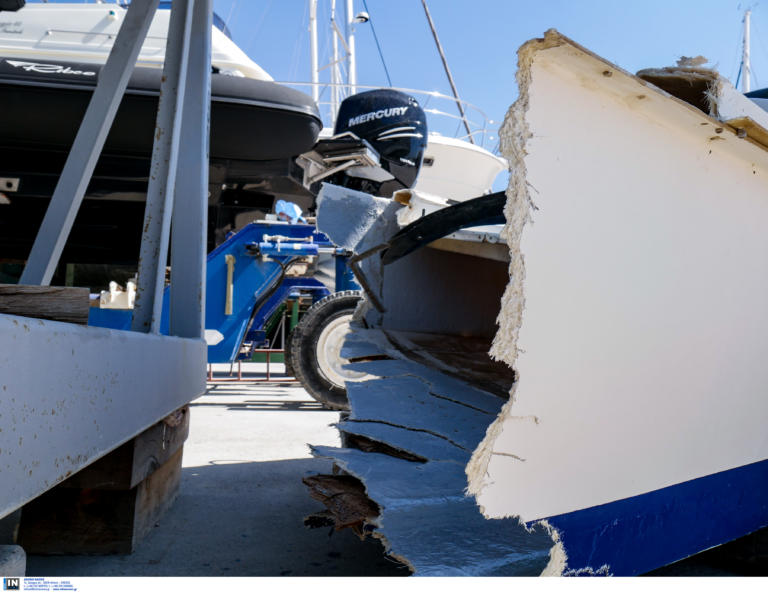 Η σφοδρότητα της σύγκρουσης ήταν τέτοια που η ξύλινη βάρκα διαλύθηκε. Το 12μετρο φουσκωτό σκάφος στην κυριολεξία τη διέλυσε όπως φαίνεται και στις εικόνες που ακολουθούν.