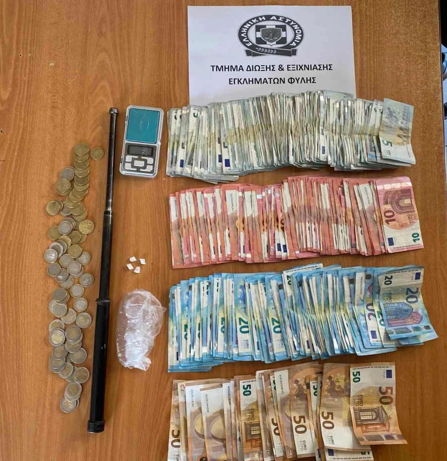 Κατά την έρευνα που ακολούθησε, παρουσία εισαγγελικού λειτουργού, εντοπίστηκαν ζυγαριά ακριβείας, πτυσσόμενο γκλομπ και 5.500 ευρώ σε μετρητά, ενισχύοντας την εικόνα οργανωμένης δράσης.