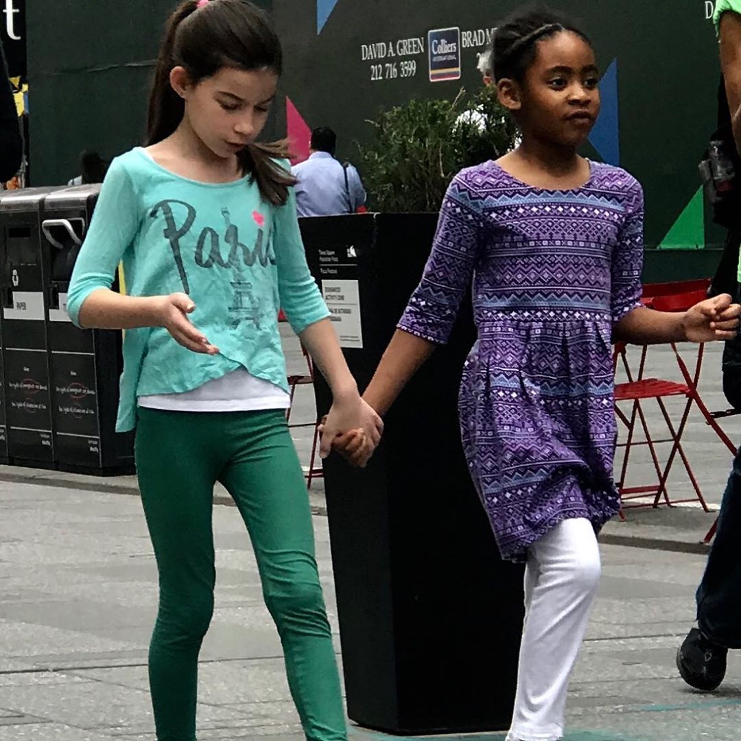 «3 χρόνια πριν στη Νέα Υόρκη. Δεν ξέρω γιατί τράβηξα αυτή την φωτό. Μου άρεσαν. Έπαιζαν πολλή ώρα μαζί και ήταν τόσο ευτυχισμένες. Δεν έβλεπαν καμία διαφορά η μια στην άλλη,γιατί δεν υπήρχε για να την δουν. Είναι 2 ψυχές, 2 άνθρωποι, 2 καρδιές που ενώθηκαν γιατί έπαιζαν ωραία- χωρίς καμία διάκριση, χωρίς καμία δεύτερη σκέψη, χωρίς καμία λογοκρισία. Έτσι ακριβώς όπως θα έπρεπε να είναι ο κόσμος.