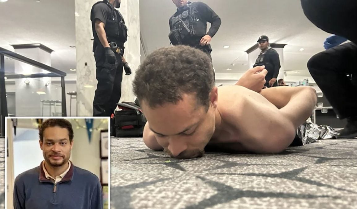 Δραματικό βίντεο που ανήρτησε στα μέσα κοινωνικής δικτύωσης ο Τραμπ δείχνει τον Άλεν να ανοίγει πυρ και να ορμάει προς την αίθουσα χορού. Ένας αστυνομικός πυροβολήθηκε, με τη σφαίρα να χτυπά το αλεξίσφαιρό του γιλέκο.