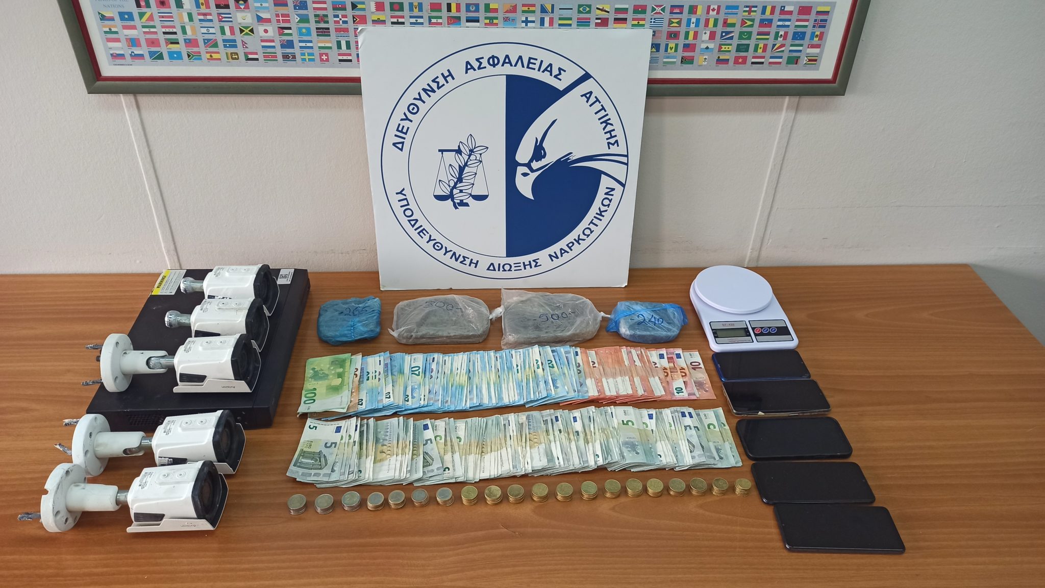Συνολικά, πραγματοποιήθηκαν πέντε έρευνες σε οικίες όπου συνολικά κατασχέθηκαν: