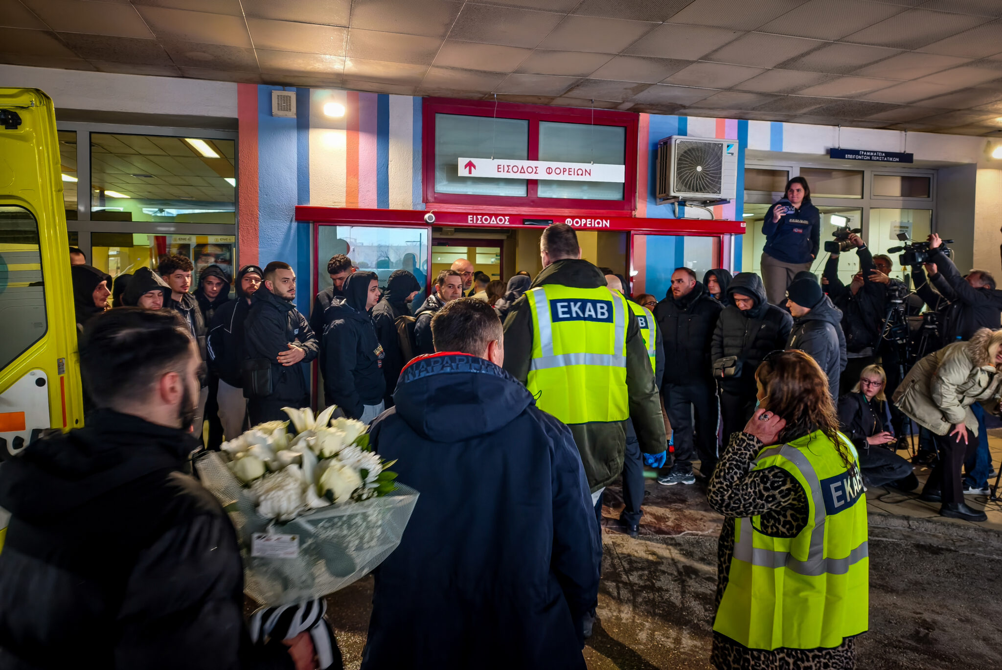 Συγγενείς, φίλοι και οπαδοί του ΠΑΟΚ, υποδέχθηκαν τους 2 τραυματίες στο νοσοκομείο της Θεσσαλονίκης, κρατώντας στα χέρια λευκά λουλούδια και κασκόλ του ΠΑΟΚ.