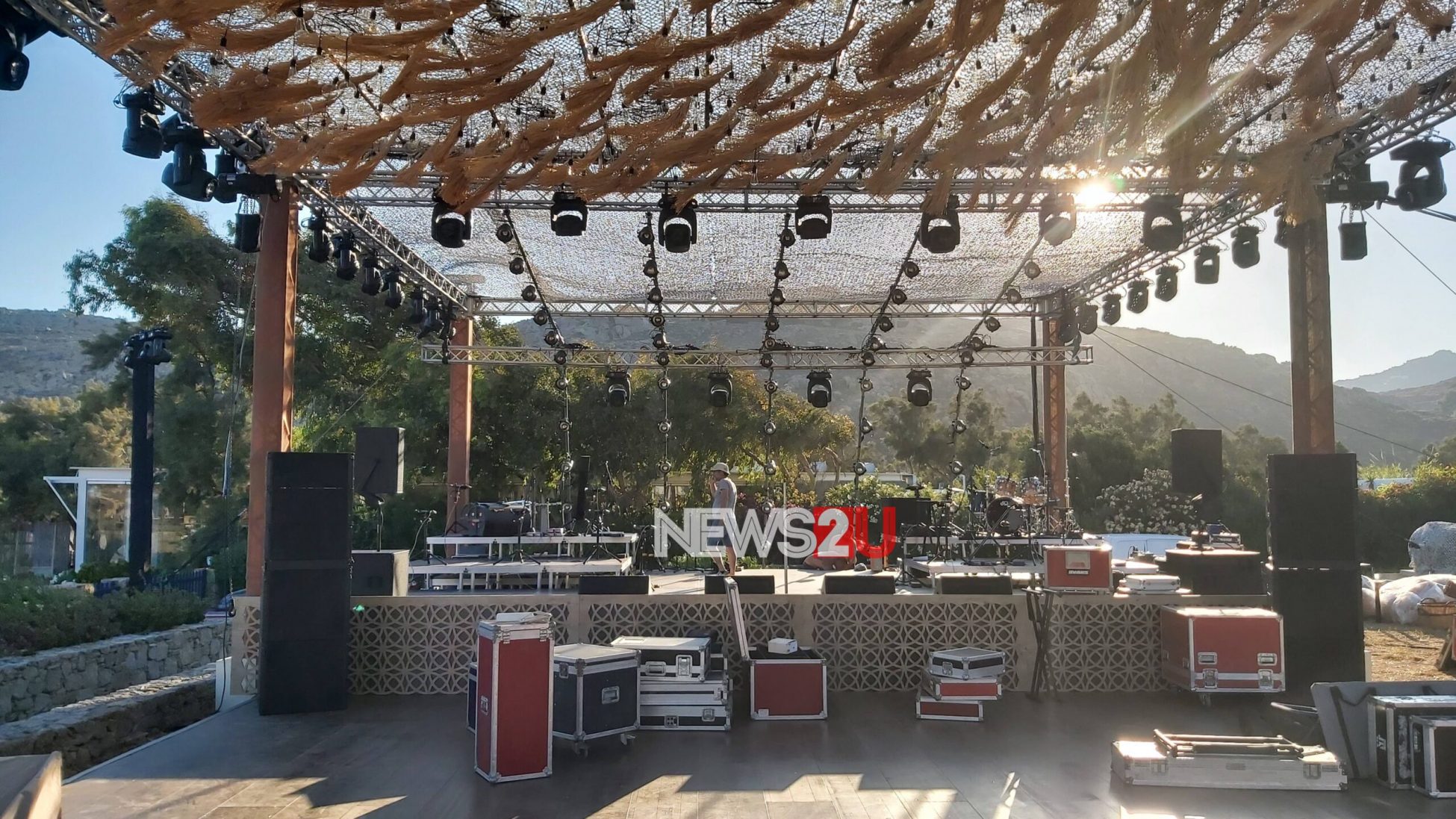 Εκτός από την εντυπωσιακή σκηνή, ο χώρος έχει διαμορφωθεί κατάλληλα για να υποδεχτεί τους λαμπερούς καλεσμένους, που θα γιορτάσουν την ένωση της Εριέττας Κούρκουλου-Λάτση και του Βύρωνα Βασιλειάδη.