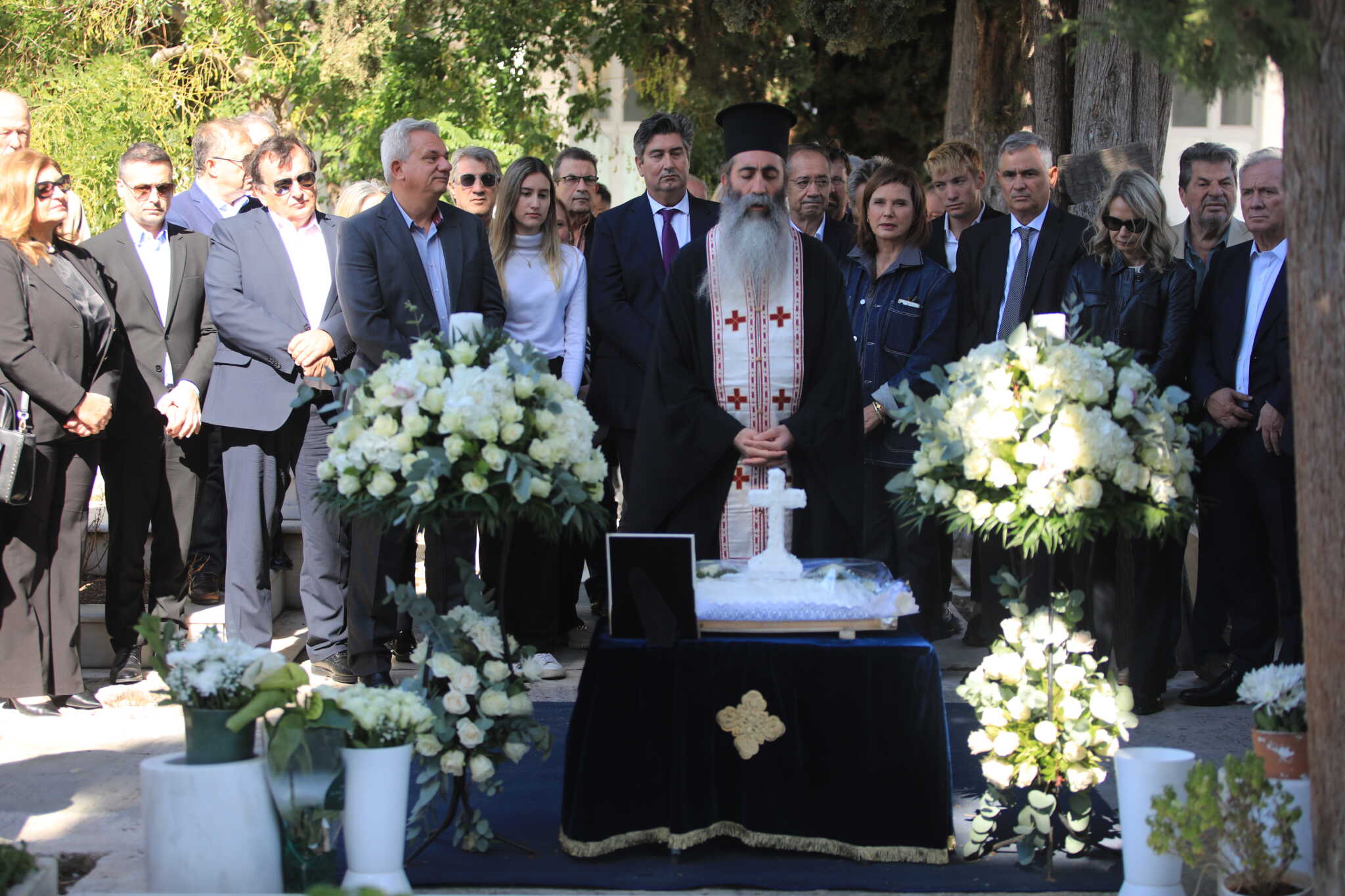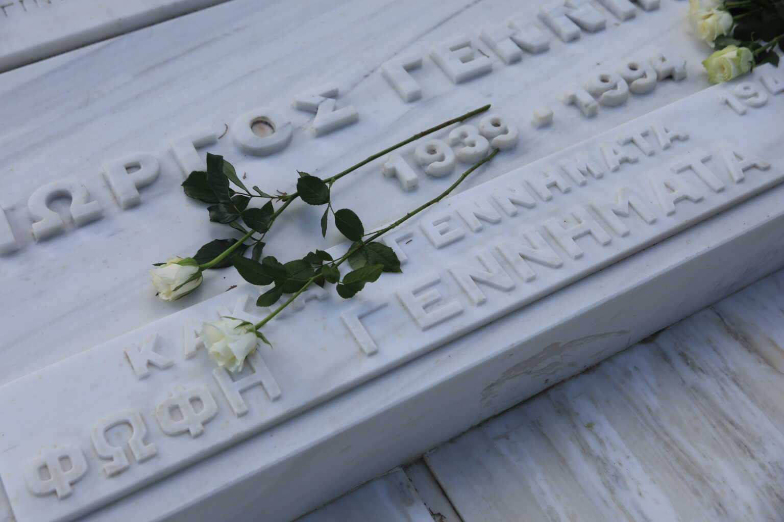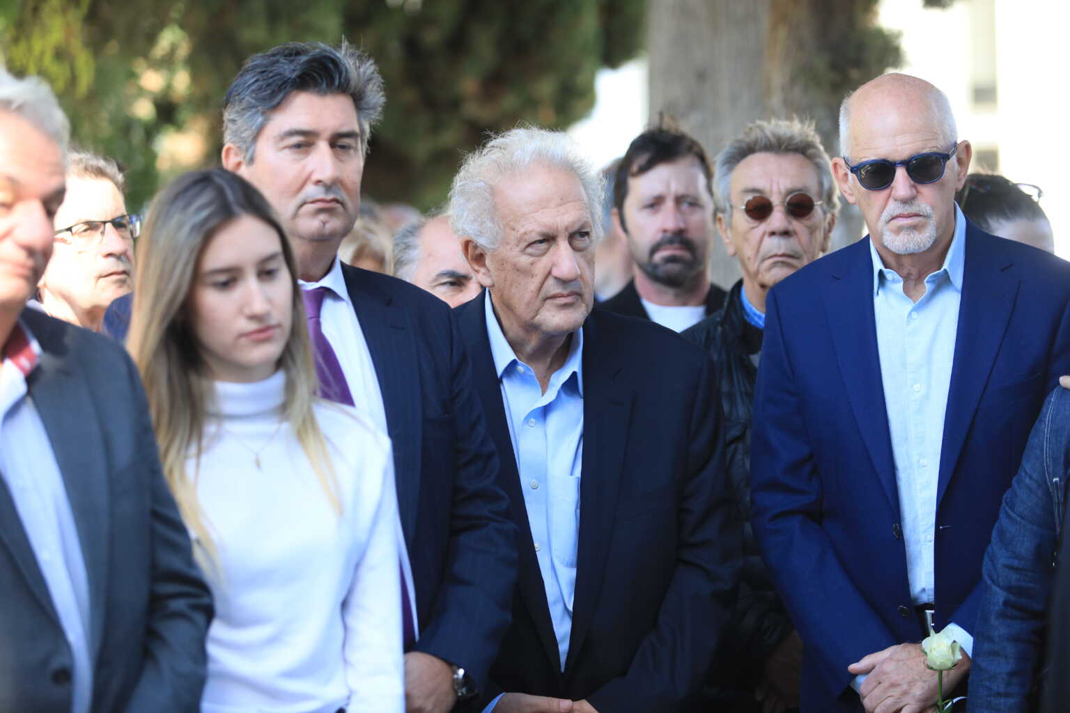Όλοι κρατώντας λευκά τριαντάφυλλα πάνω από τον οικογενειακό τάφο της οικογένειας Γεννηματά.