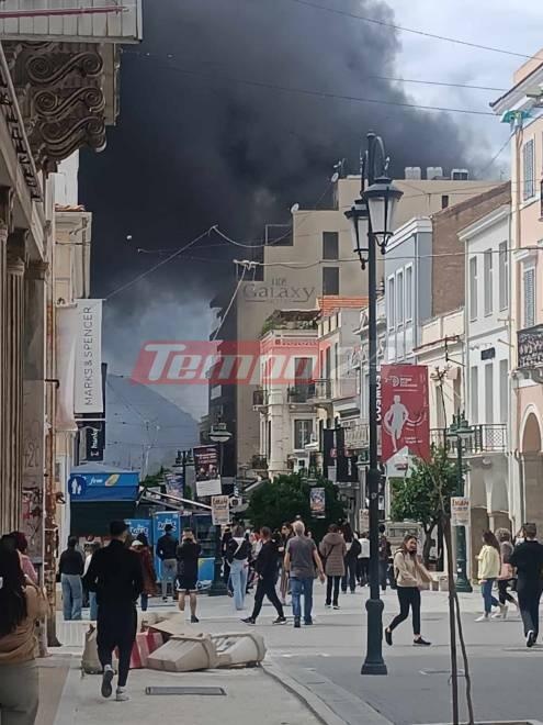 Με καπνούς γέμισε το ξενοδοχείο Galaxy στο κέντρο της Πάτρας, που βρίσκεται πάνω από το κατάστημα