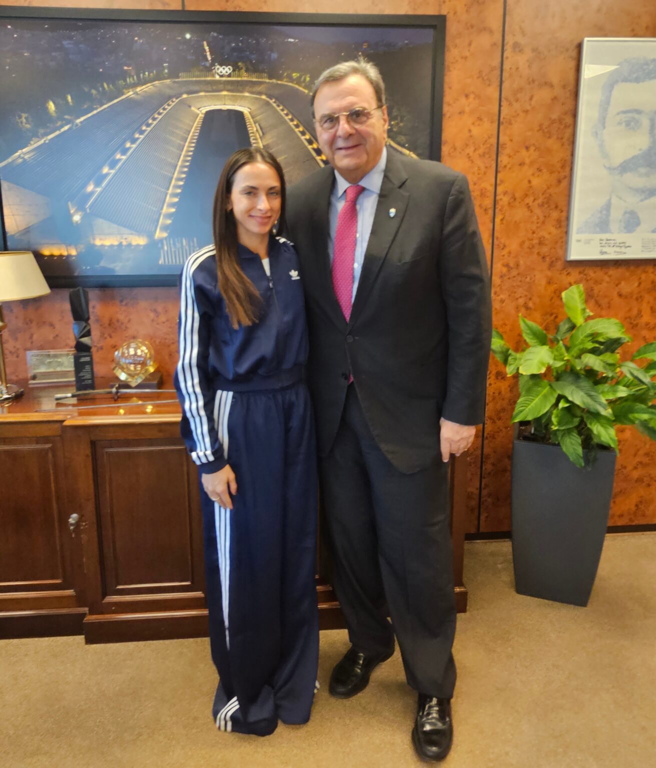Ο κ. Κούβελος προσκάλεσε την πρωταθλήτρια των δρόμων αντοχής για να την συγχαρεί και για να της ανακοινώσει ότι θα ενταχθεί στο πρόγραμμα «Υιοθετήστε έναν Αθλητή στο Δρόμο για το Λος Αντζελες», το οποίο πλέον θα διαχειρίζεται αποκλειστικά η ΕΟΕ και η οποία θα λαμβάνει από τους χορηγούς την οικονομική υποστήριξη και θα τη μεταφέρει απευθείας στους αθλητές.