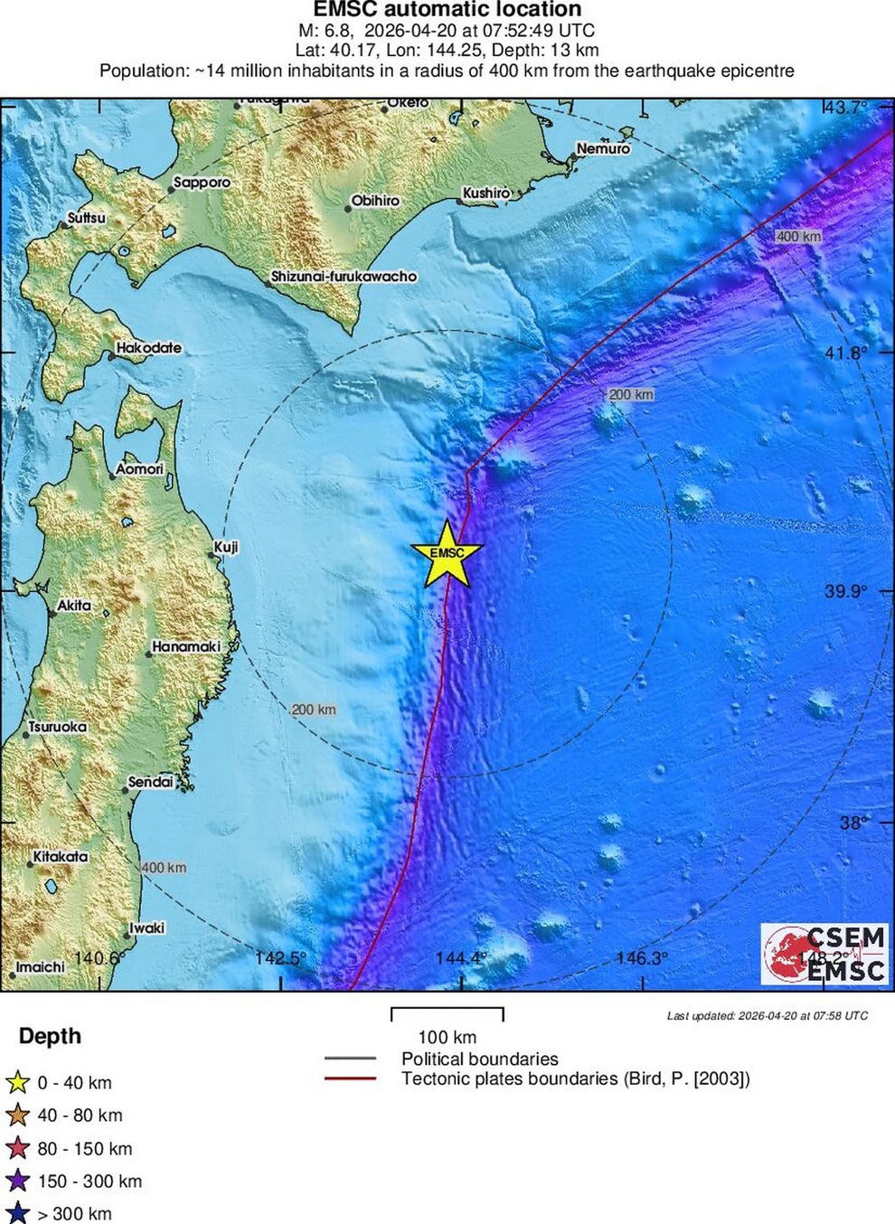 Ισχυρός σεισμός 7,4 Ρίχτερ ανοικτά των ιαπωνικών ακτών – Ειδοποίηση για τσουνάμι έως και 3 μέτρων