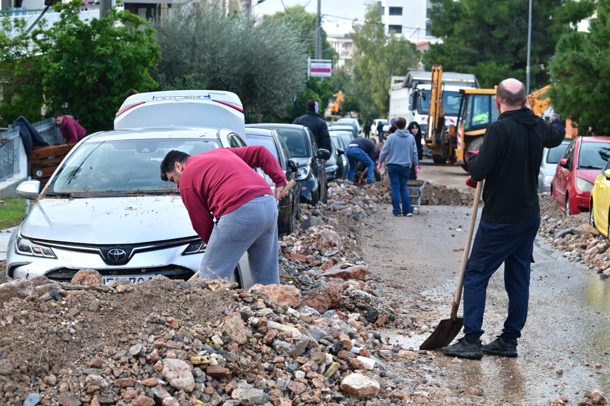 Οχήματα ακινητοποιήθηκαν με οδηγούς να εγκλωβίζονται σε αυτά και να χρειάζονται τη συνδρομή των πυροσβεστικών δυνάμεων την ώρα που οι δρόμοι μετατράπηκαν σε χειμάρρους με φερτά υλικά. Επιπλέον ρέματα σε Ασπρόπυργο και Ραφήνα (Άγιος Ιωάννης και Μεγάλο Ρέμα) υπερχείλισαν, με τους κατοίκους από περιοχές κοντά σε αυτά να απομακρύνονται.