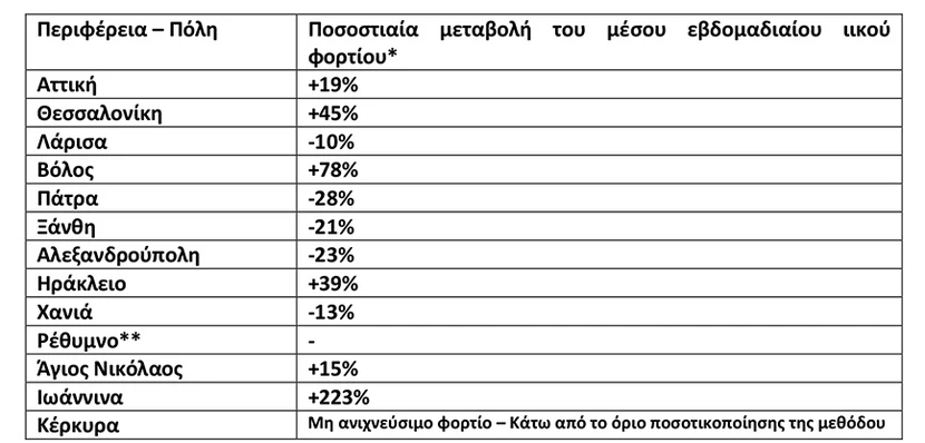 Ειδικότερα, στη σημερινή (2/11) ανακοίνωση του Δικτύου αναφέρεται πως καθαρές αυξήσεις παρατηρήθηκαν στο Ηράκλειο (+39%), στη Θεσσαλονίκη (+45%), στο Βόλο (+78%) και στα Ιωάννινα (+223%), ενώ οριακές