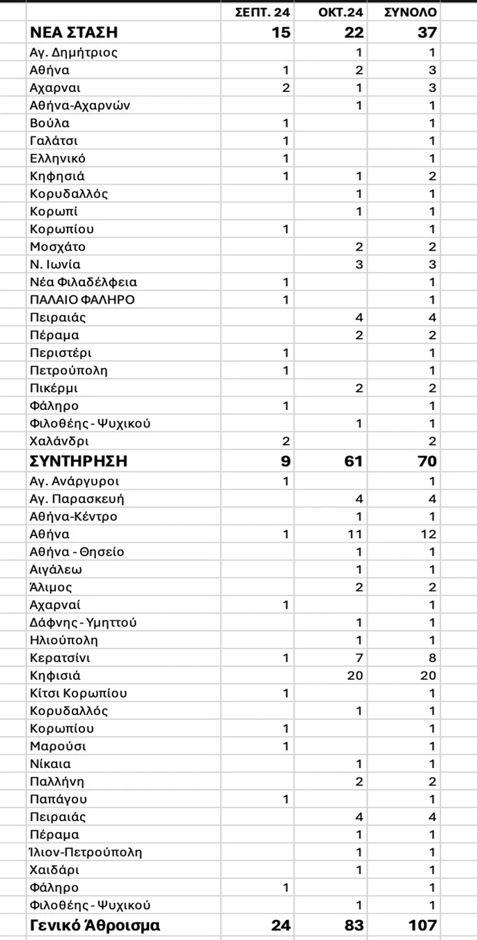 *Επισυνάπτεται ο σχετικός πίνακας με τις στάσεις που δημιουργήθηκαν ή συντηρήθηκαν ανά δήμο.