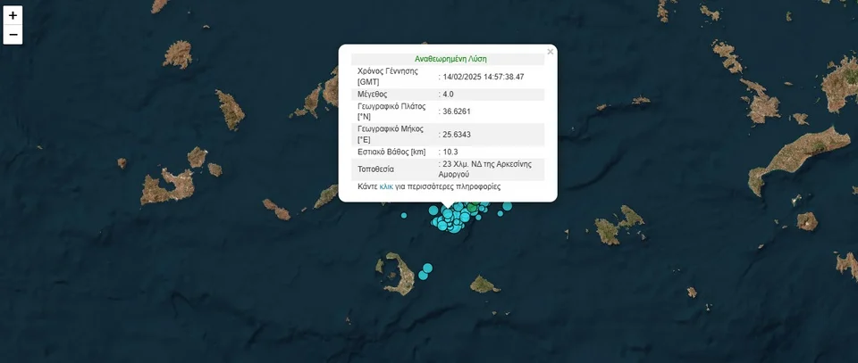 Ο σεισμός είχε εστιακό βάθος 10,3 Χλμ. και επίκεντρο στα 23 Χλμ. νοτιοδυτικά της Αρκεσίνης Αμοργού.