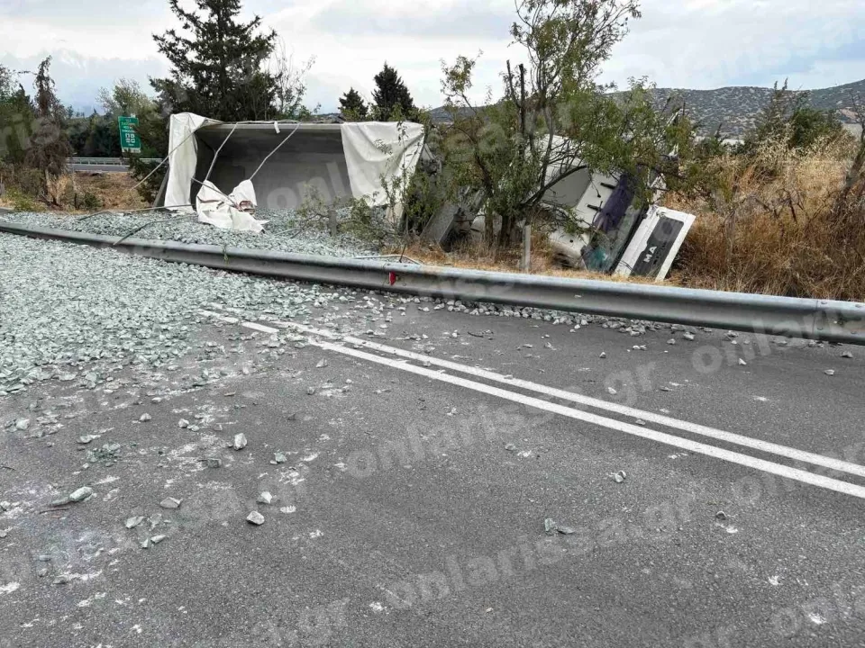 Κατά πληροφορίες του onlarissa.gr, μια νταλίκα εξετράπη της πορείας της κάτω από αδιευκρίνιστες ως στιγμής συνθήκες έχοντας κατεύθυνση προς Αθήνα και ο οδηγός χάνοντας, για άγνωστο λόγο, τον έλεγχο του βαρύ οχήματος, έφυγε από την ε.ο. και «προσγειώθηκε» από κάτω, στον παράδρομο Μακρυχωρίου.