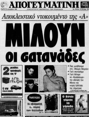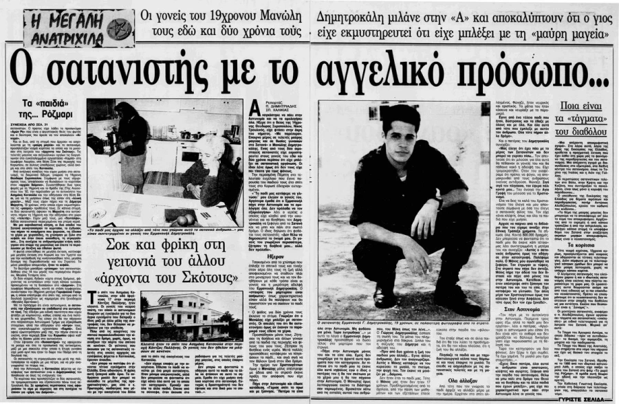 Η αποκάλυψη της υπόθεσης, τον Δεκέμβριο του ‘93, προκάλεσε σοκ σε ολόκληρη τη χώρα. Οι αποκαλύψεις για εγκλήματα με σατανιστικά κίνητρα και αιματηρές τελετές σκόρπισαν τον τρόμο και δημιούργησαν ένα πρωτοφανές κύμα κοινωνικού πανικού. Θυμάμαι ακόμα τα πρωτοσέλιδα – «Έπιναν αίμα». Και δεν ήταν σχήμα λόγου -τα δημοσιεύματα εκείνης της εποχής περιέγραφαν σατανιστικές τελετές, αίμα, βουντού και δαιμονικές πρακτικές. Αυτή η υπόθεση έμοιαζε βγαλμένη από σενάριο του Criminal Minds. Ήταν μια από τις πρώτες φορές στην Ελλάδα που ο όρος «σατανισμός» δεν ακουγόταν απλώς ως τρομολαγνεία, αλλά συνδεόταν με πραγματικά εγκλήματα. Ήταν αρχές των ‘90s και η κοινωνία βίωνε ένα σοκ. Ήταν κάτι πρωτοφανές.