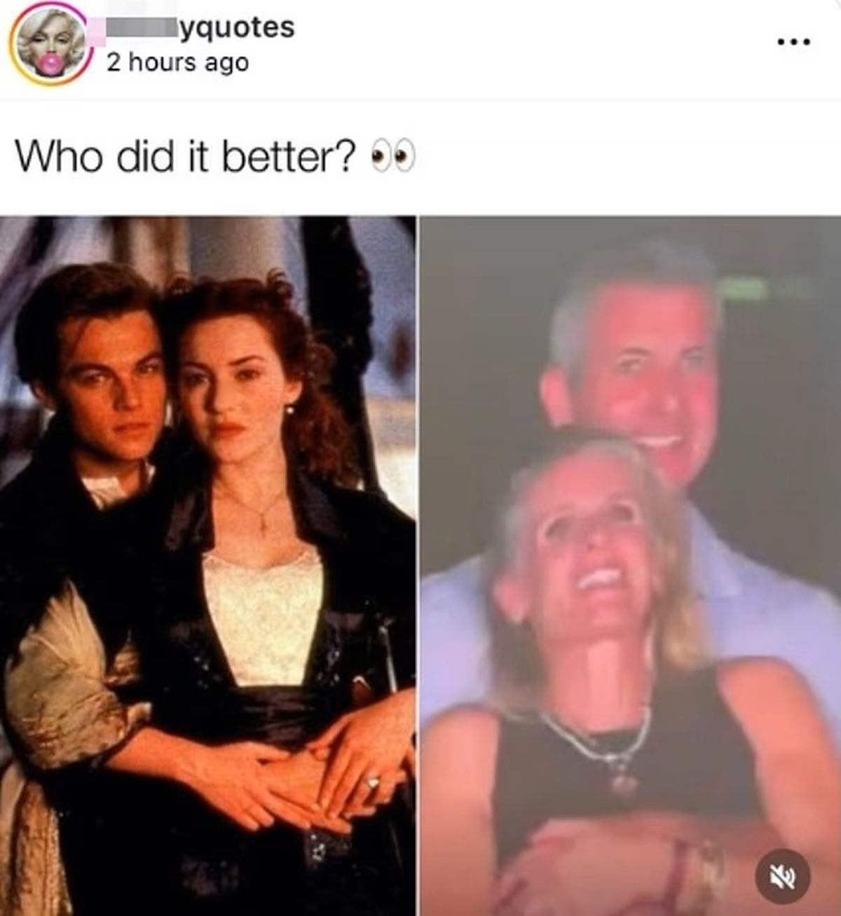 «Ποιος το έκανε καλύτερα;» ρώτησε ένας χρήστης στο Instagram, συγκρίνοντας τον Μπάιρον που αγκαλιάζει την Κάμποτ με τον Τζακ (Λεονάρντο Ντι Κάπριο) που κρατά την Ρόουζ (Κέιτ Γουίνσλετ) στην κλασική σκηνή από τον Τιτανικό.