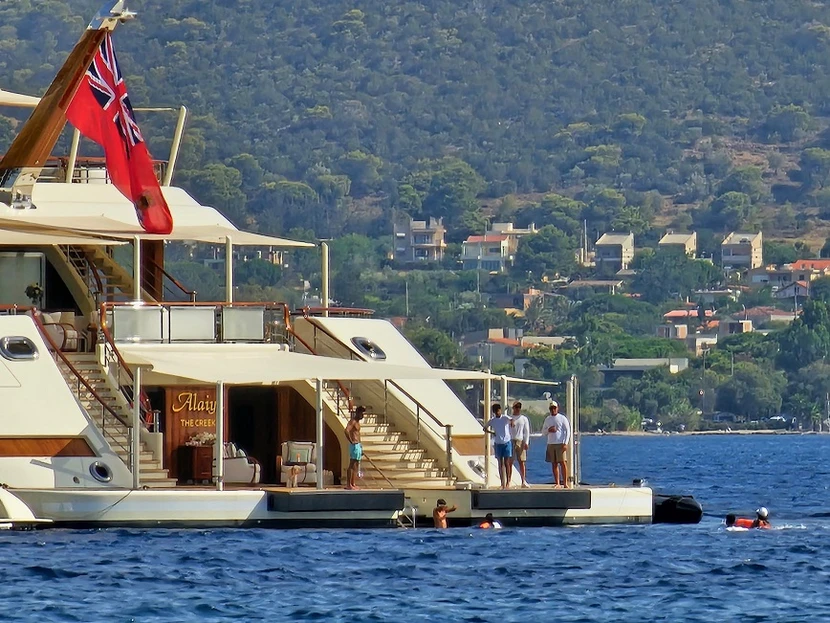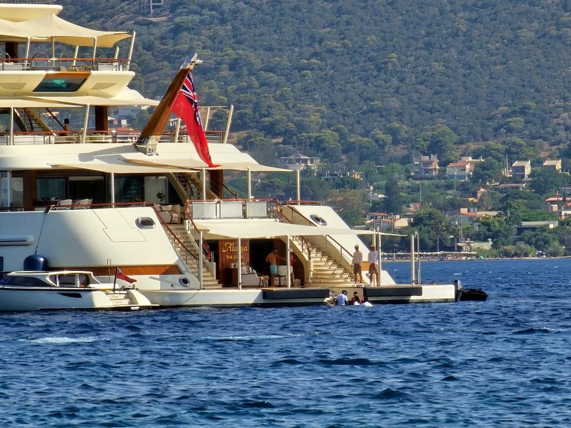 Όλο και περισσότεροι μεγιστάνες επιλέγουν την Ελλάδα για τις διακοπές τους το φετινό καλοκαίρι. Αυτή την ώρα, στο λιμάνι του Πόρτο Ράφτη έχει δέσει η εντυπωσιακή υπερπολυτελής θαλαμηγός Alaiya μήκους… 111,5 μέτρων, όσο δηλαδή είναι το μήκος και μιας φρεγάτας του Πολεμικού Ναυτικού.