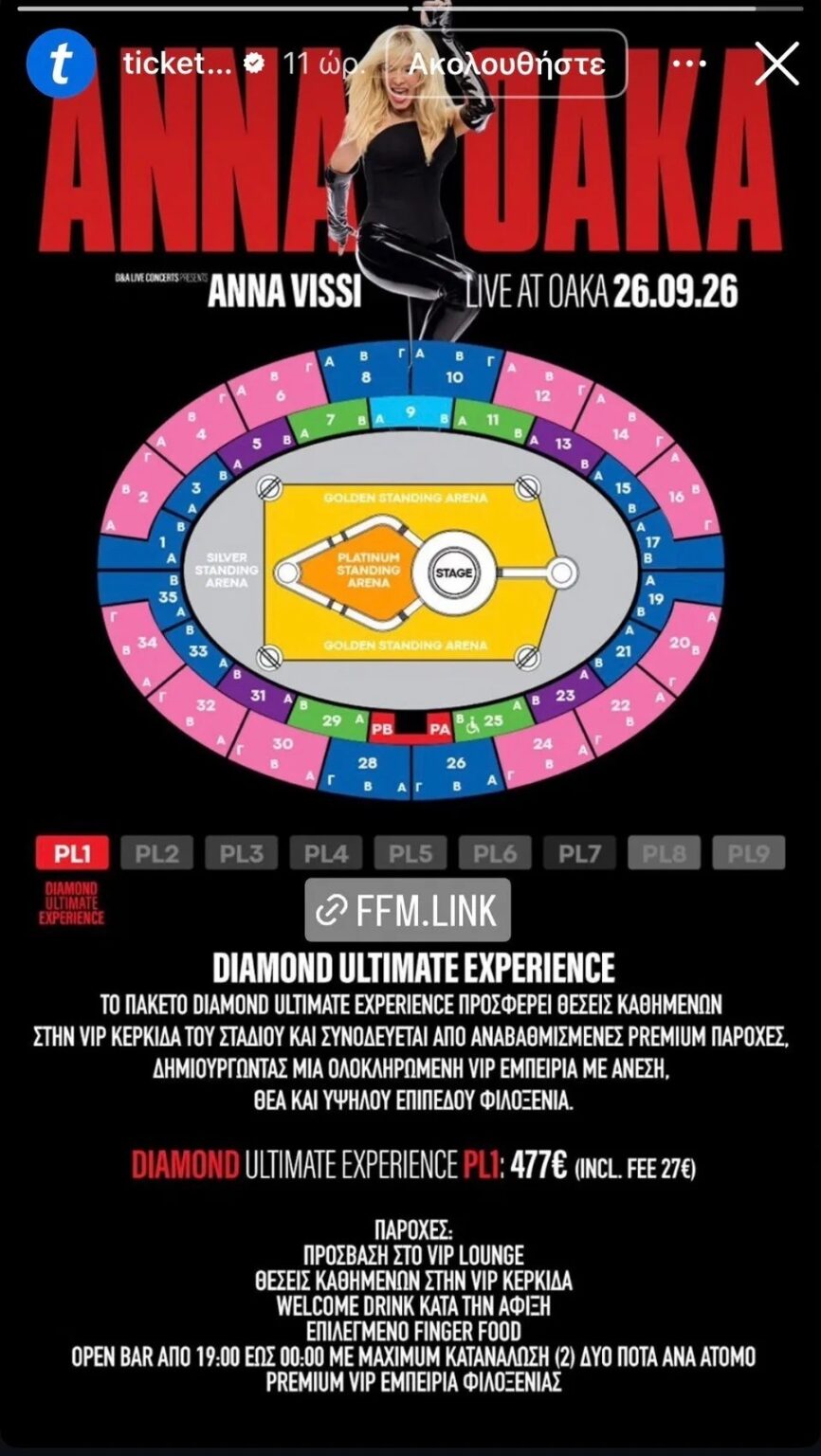 Αξίζει να αναφερθεί πως υπάρχει και η diamond ultimate experience που αγγίζει τα 477 ευρώ. Το χρυσό εισιτήριο αυτό περιλαμβάνει μεταξύ άλλων vip lounge, welcome drink, open bar και premium vip εμπειρία φιλοξενίας.