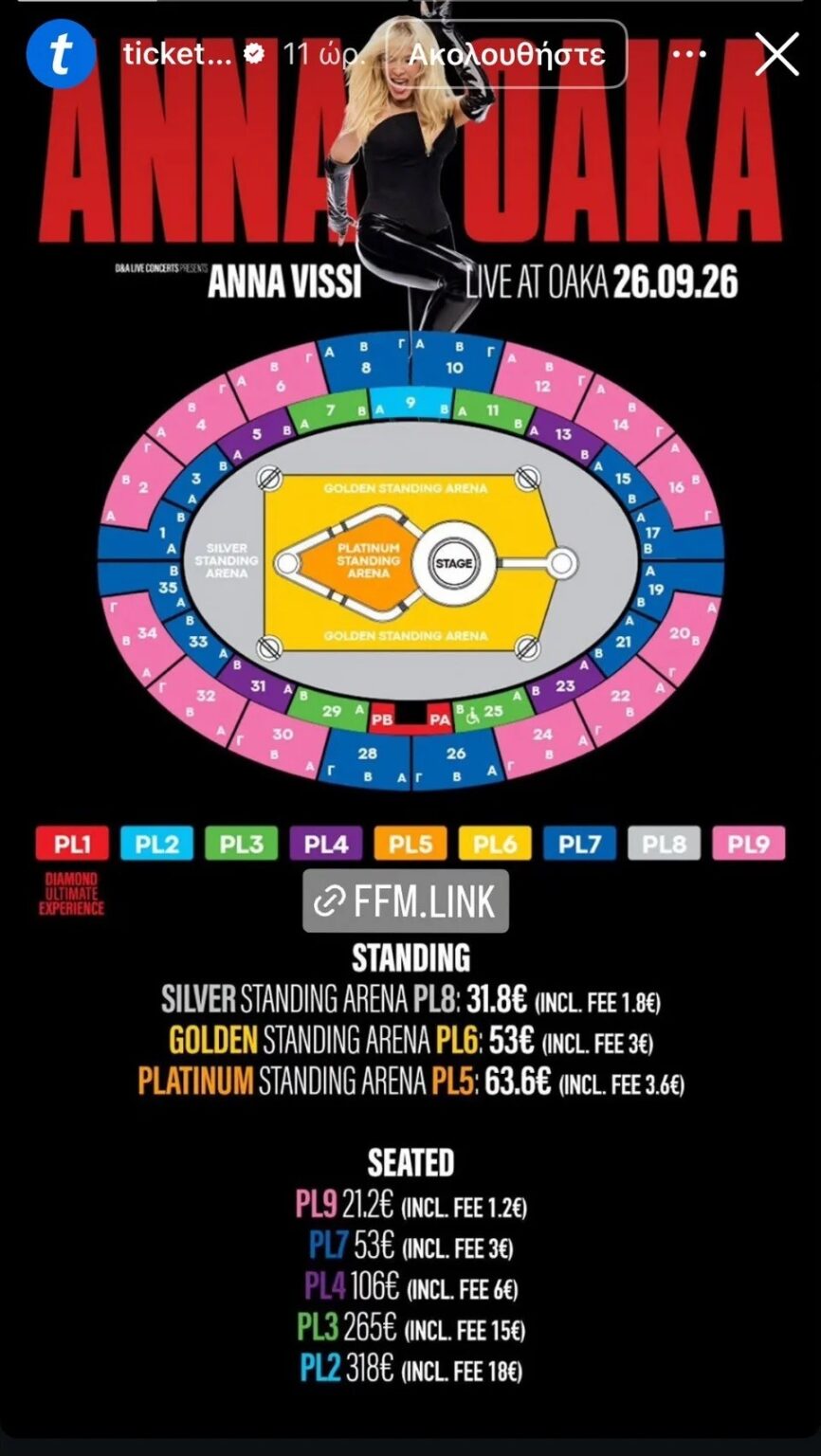 Η ticketmaster, όπου γίνεται η προπώληση των εισιτηρίων για τη συναυλία της απόλυτης Ελληνίδας σταρ, δημοσίευσε τις τιμές προκειμένου όσοι ενδιαφέρονται να εξασφαλίσουν τα πολυαναμενόμενα «χαρτάκια».