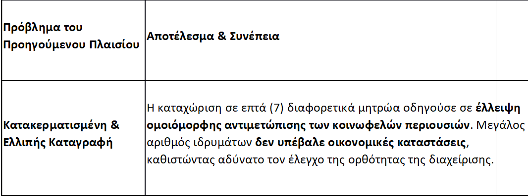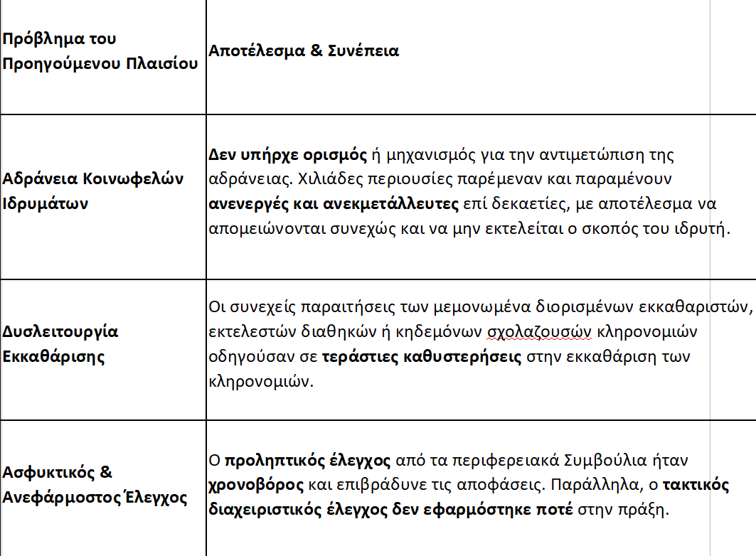 Οι νέες ρυθμίσεις έρχονται να επιλύσουν χρόνια προβλήματα δυσλειτουργίας, καθυστέρησης και αδιαφάνειας που είχαν δημιουργήσει ένα ασφυκτικό περιβάλλον για τη διαχείριση των κοινωφελών πόρων.