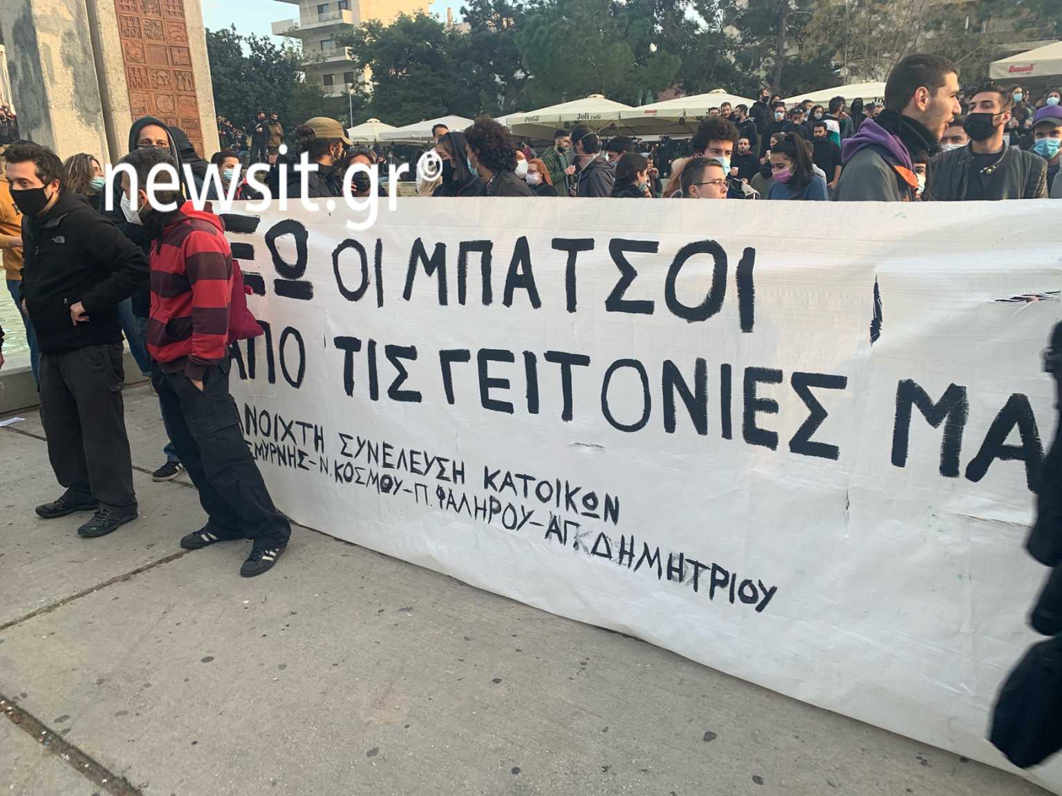 Κάτοικοι, δημοτικές παρατάξεις, συνδικάτα, το ΠΑΜΕ, εργατικές λέσχες, συνελεύσεις κατοίκων από την περιοχή και τις γύρω περιοχές, φοιτητικοί σύλλογοι, κι άλλες συλλογικότητες συγκεντρώθηκαν στην πλατεία της Νέας Σμύρνης φωνάζοντας συνθήματα ενάντια στην αστυνομική βία και καταστολή και καταγγέλλοντας όσα συνέβησαν.