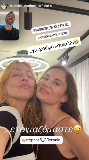 Στα social media κυκλοφορούν ήδη φωτογραφίες και βίντεο από τα παρασκήνια της προετοιμασίας. Στα stories της Σμαράγδας Καρύδη, ο τηλεοπτικός «Αλέξης», Μιχάλης Μαρίνος, φαίνεται να τις παρακολουθεί μέσω βιντεοκλήσης.