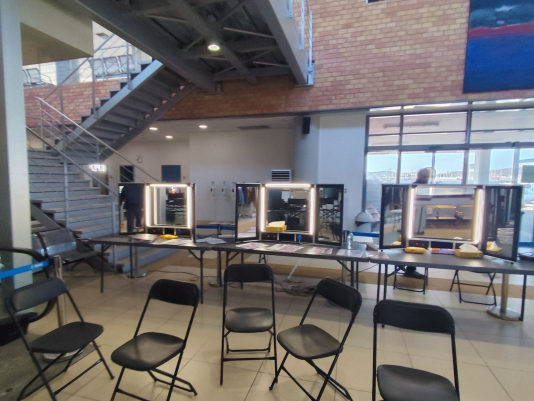 Στις φωτογραφίες που δημοσιεύουμε σήμερα μπορεί κανείς να δει πώς είχαν μετατραπεί σε βεστιάρια και καμαρίνια οι εσωτερικοί χώροι του σταθμού, με κοστούμια και ρούχα ηθοποιών και κομπάρσων, ενώ οι χώροι για το μακιγιάζ και την περιποίηση των ηθοποιών έμοιαζαν με καμαρίνια που θα ζήλευαν και τα μεγαλύτερα τηλεοπτικά στούντιο! Οι ειδικοί χώροι είχαν στηθεί στις 9, 10 και 11 Μαρτίου, ημερομηνίες κατά τις οποίες έγιναν τα απαιτητικά γυρίσματα τόσο σε πλοίο της γραμμής όσο και στις κοντινές περιοχές του Σουνίου και των Λεγρενών.