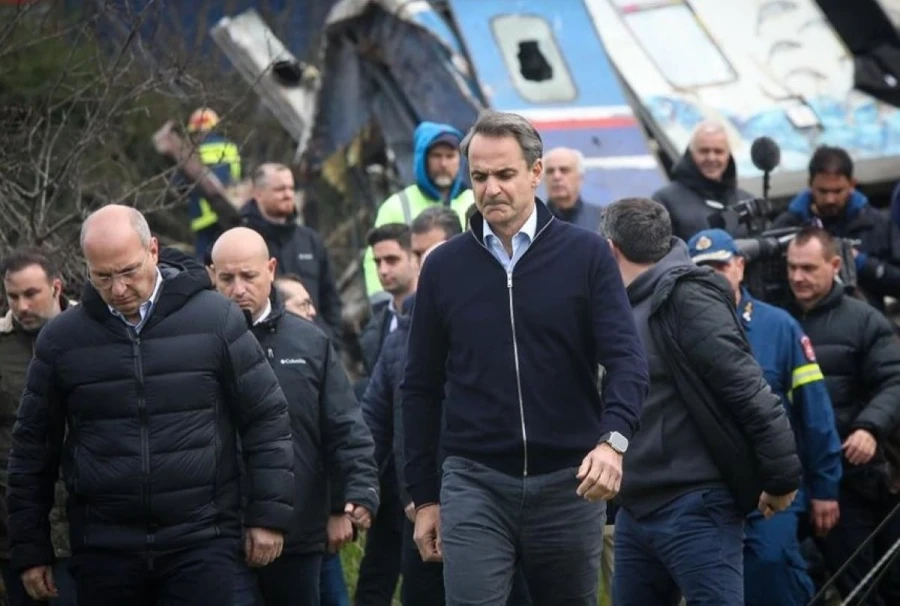 Ο πρωθυπουργός Κυριάκος Μητσοτάκης συνοδευόμενος από τον τότε υπουργό Μεταφορών και Υποδομών, Κώστα Αχ. Καραμανλή μεταβαίνουν στον τόπο του δυστυχήματος. «Είναι πάρα πολύ δύσκολο αυτό που βιώνουμε σήμερα ως χώρα. Μιλάμε για μία ανείπωτη τραγωδία. Η σκέψη μας σήμερα είναι πρώτα και πάνω απ’ όλα με τους συγγενείς των θυμάτων. Υποχρέωσή μας είναι να περιθάλψουμε τους τραυματίες και από εκεί και πέρα να ταυτοποιήσουμε τις σορούς. Από εκεί και πέρα, ένα πράγμα μπορώ να εγγυηθώ: θα μάθουμε τα αίτια αυτής της τραγωδίας και θα κάνουμε ό,τι περνάει από το χέρι μας για να μην ξανασυμβεί ποτέ κάτι τέτοιο», δηλώνει τότε ο πρωθυπουργός.