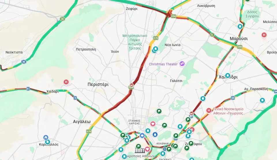 Προβλήματα παρατηρούνται επίσης στην Αττική Οδό, τον Κηφισό και στη Μεσογείων.
